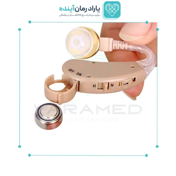 برای فعالسازی دستگاه، ابتدا باتری را در محفظه مشخص قرار دهید. سپس سری سیلیکونی را داخل گوش بگذارید و بدنه دستگاه را پشت لاله گوش ثابت کنید. دکمه روشن را در حالت “ON” قرار دهید و با تنظیم ولوم در سطح پایین شروع کنید تا گوش با صدا تطابق یابد.