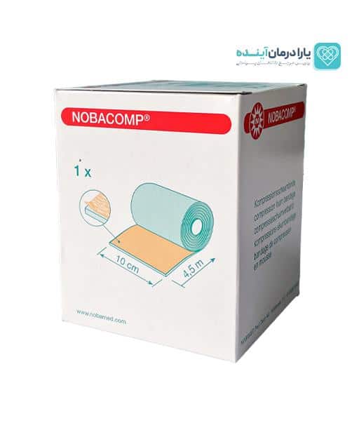 بانداژ دو لایه فشاری نوبا از جنس پلی اورتان میباشد و قابلیت کشسانی 85% دارد که برای درمان فشرده سازی لنفولوژیکی و فعالسازی پمپاژ عضلانی در بیمار مورد استفاده قرار میگیرد.